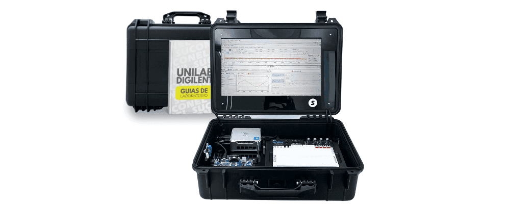 Si en tu institución el conocimiento se enseña bien pero la instrumentación se comparte mal, este kit ataca el problema de raíz: integra el Analog Discovery Studio (ADS) con 13 instrumentos de test, una FPGA Basys 3, mini-PC (16 GB RAM / 512 GB SSD), monitor 15,6", periféricos y módulos Pmod (ESP32 y Puente H), todo dentro de una maleta con guías de práctica.