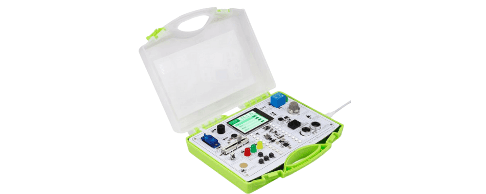 Este kit integra 17 sensores/actuadores, suma una pantalla TFT táctil a color de 2,4", 20 LEDs RGB ambientales y 21 lecciones progresivas.